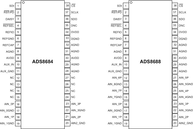 | ADS868x | TSSOP (38) | 9.70 mm × 4.40 mm |