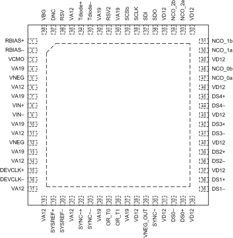 The LM15851 device is available in a 68-pin VQFN package. The device operates over the Industrial (–40°C ≤ TA ≤ 85°C) ambient temperature range.
