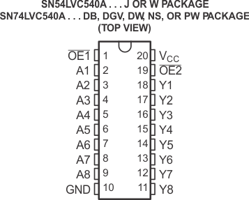 The SN54LVC540A octal buffer/driver is designed for 2.7-V to 3.6-V VCC operation, and the SN74LVC540A octal buffer/driver is designed for 1.65-V to 3.6-V VCC operation.